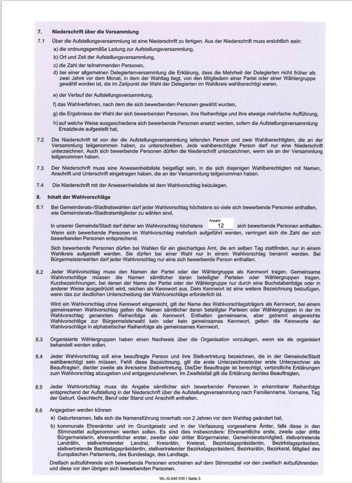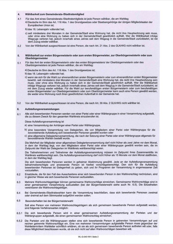 Das Staatsministerium des Inneren, für Sport und Integration hat zur Kommunalwahl am 08.03.2026 die Frist für die Erteilung von Wahlscheinen auf den 20. Tag vor der Wahl (bisher war es der 41. Tag vor der Wahl) neu festgelegt.